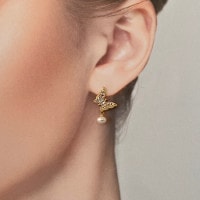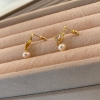 Pg3077 ピアス 14kコーティング/天然パール/ジルコニア