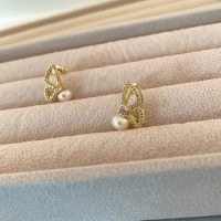 Pg3078 ピアス 14kコーティング/天然パール/ジルコニア